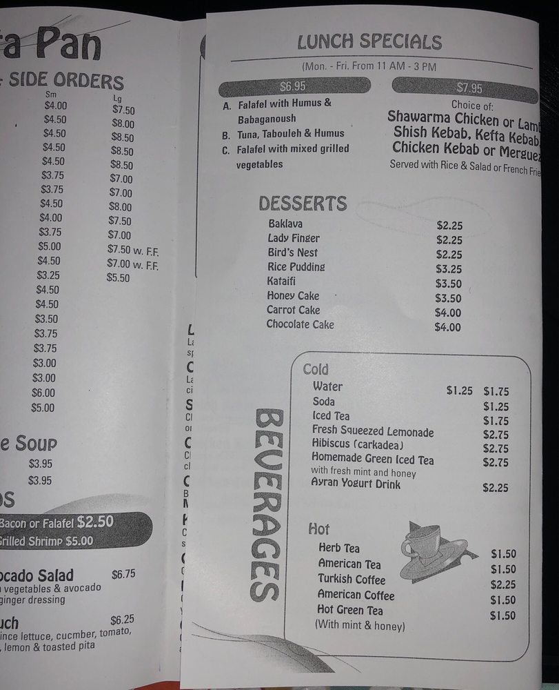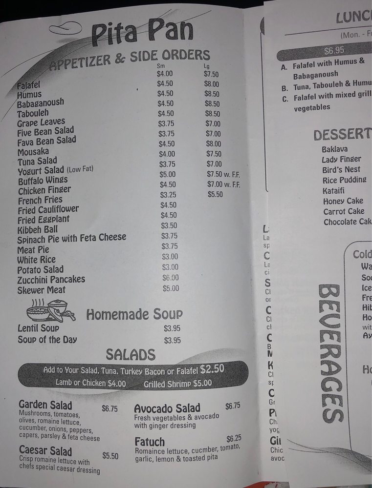 Pita Pan offers a diverse menu, specializing in kebabs, vegetarian, and Mediterranean dishes. Located in Brooklyn, NY, this casual restaurant has a range of options for diners, including delivery, takeout, and reservations. With vegan and vegetarian choices, Pita Pan caters to various dietary preferences. Their flavorful soups and refreshing salads, like the avacado salad and fattoush salad, showcase the fresh ingredients used in their dishes. Customers praise the generous portions and friendly service, making it a neighborhood favorite. The lamb and chicken shawarma are standout items, with customers raving about the taste and quality. Despite its modest appearance, Pita Pan exceeds expectations with its delicious food and welcoming atmosphere.